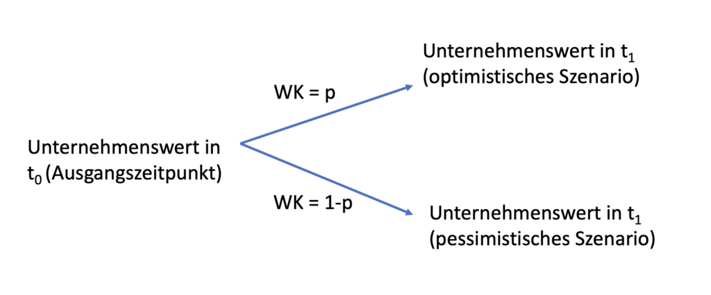 Die Idee hinter dem Binomial-Modell (Zwei Umweltzustände, die sich von Periode zu Periode mit Faktor zwei immer weiter verzweigen) ist einem Entscheidungsbaum nicht unähnlich.